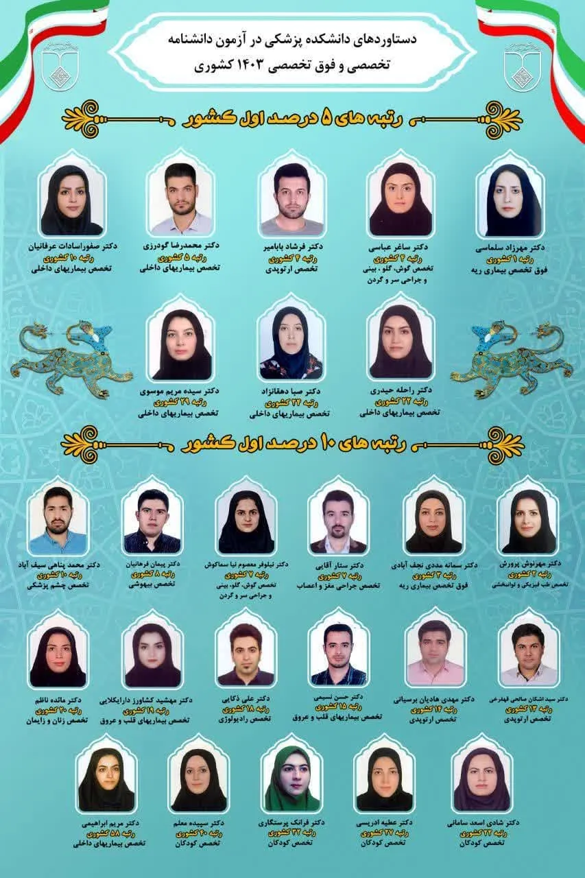 کسب رتبه های 5 و 10 درصد اول کشور توسط متخصصین دانشکده پزشکی دانشگاه علوم پزشکی اصفهان