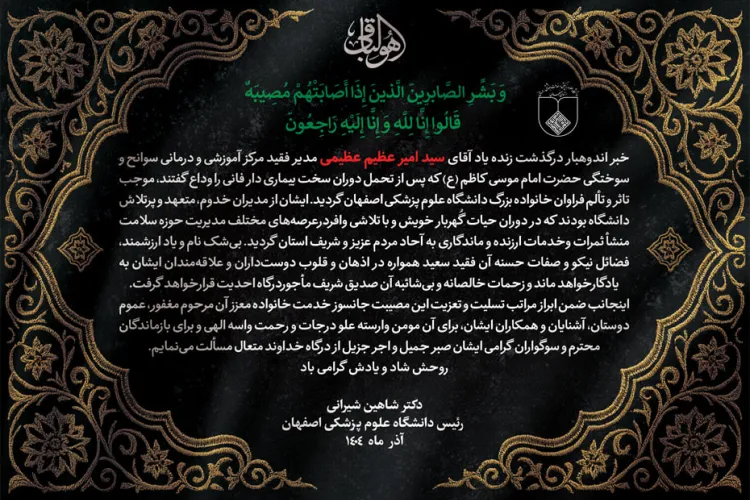 - پیام تسلیت رییس دانشگاه در پی درگذشت پرسنل فوریت های پزشکی شهرستان نایین