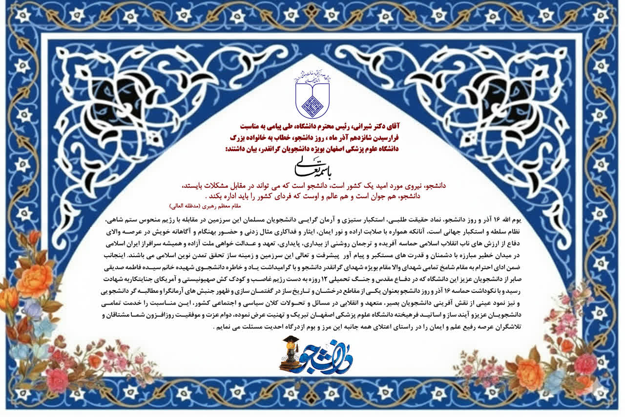 پیام رئیس دانشگاه خطاب به خانواده بزرگ دانشگاه علوم پزشکی اصفهان