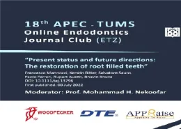 Tehran University of Medical Sciences presents the eighteenth APEC virtual journal club on Friday 21st of October 2022 at 16:30 Iran time. The paper entitled: "Present status and future directions: The restoration of root filled teeth", will be discussed in this session. Following is the link to join the club: