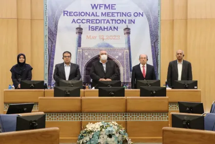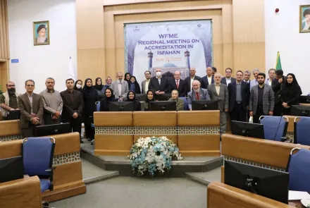 The regional meeting of World Federation of Medical Education (WFME) was held on May 22 at Isfahan University of Medical Sciences (IUMS) with the President of WFME, Professor Ricardo Leon-Borquez, and Dr. Shahin Shirani, the Chancellor of IUMS. Other attendees included Ms. Jana Cohlova, the Recognition Program Project Manager of WFME, Dr. Gohar Wajid, the WHO representative in the World Federation of Medical Education, and Professors from the Universities of Tehran, Shiraz and Yazd.