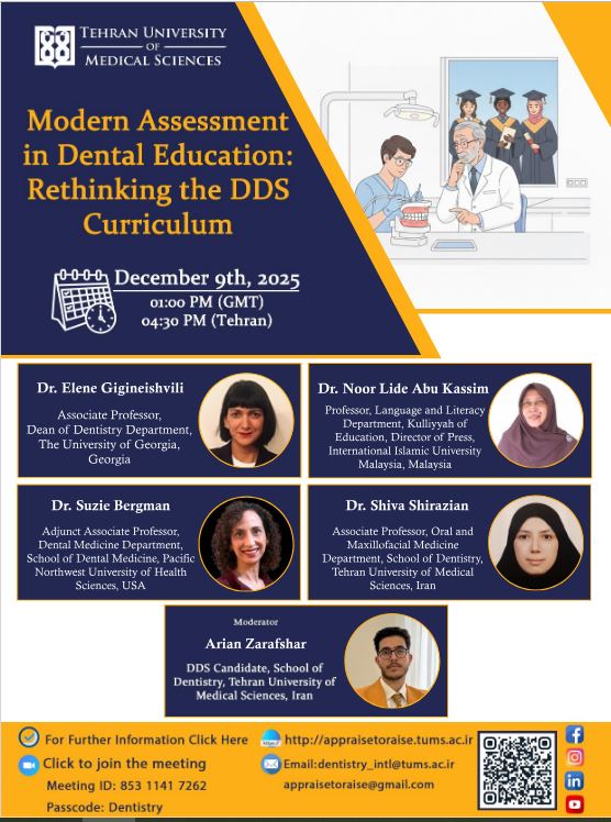 Modern Assessment in Dental Education: Rethinking the DDS Curriculum Submitted by admin-en on 8 December 2025 Modern Assessment in Dental Education: Rethinking the DDS Curriculum https://en.tums.ac.ir/appraisetoraise/en/content/1434/m 9 Dec 1 view