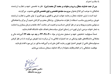 انتصاب سرپرست مجتمع تخصصی و فوق تخصصی فارابی