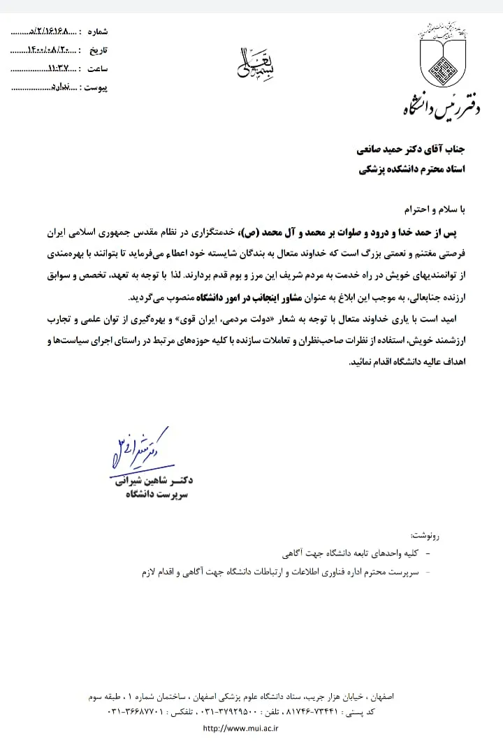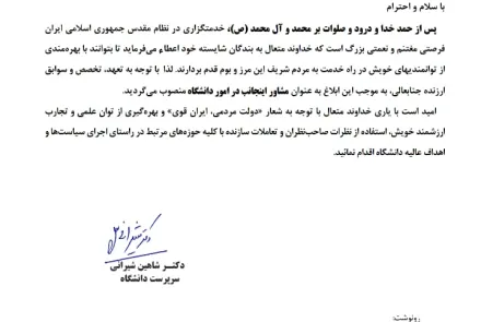 انتصاب مشاور سرپرست دانشگاه در امور دانشگاه