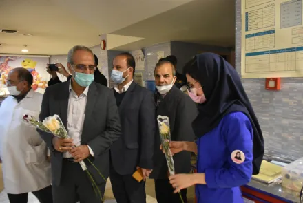عصر روز جمعه ۱۹ آذرماه، همزمان با سالروز ولادت با سعادت حضرت زینب کبری (س) و روز پرستار، استاندار و فرماندار اصفهان در معیت سرپرست دانشگاه و مدیر دفتر ریاست در بیمارستان کودکان امام حسین (ع) حضور بهم رسانده و با اهدای شاخه گل از زحمات و تلاش های عزیزان پرستار در بخش های درمانی کودکان تقدیر و قدردانی نمودند.