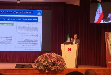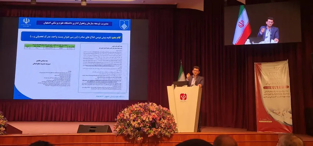 در این مراسم که باحضور دکتر رحیمی معاون توسعه مدیریت و منابع وزارت، دکتر رفیع زاده معاون نوسازی اداری سازمان اداری استخدامی و جمعی از مسئولین کشوری و دانشگاه های علوم پزشکی برگزار شد، سید مرتضی هاشمی سرپرست مدیریت منابع انسانی دانشگاه علوم پزشکی اصفهان و دکتر صفدریان مدیر توسعه سازمان و تحول اداری دانشگاه، به ارائه گزارش کاملی از تجربه برگزیده در خصوص نحوه تبدیل وضعیت کارکنان ایثارگر پرداختند و همچنین از حمایت های بی دریغ رئیس محترم دانشگاه، معاون توسعه مدیریت و منابع، همکاری مدیر گزینش و تلاش های بی نظیر کارشناسان ستادی و شاغلین ادارات منابع انسانی قدردانی به عمل آمد.