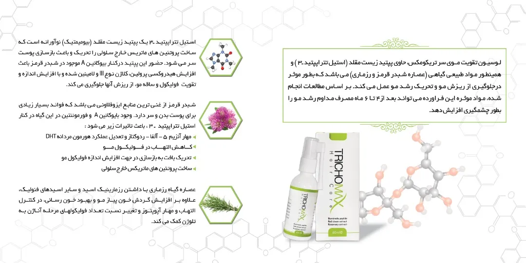 اخیرا شرکت توانسته سومین محصول خود تحت عنوان " لوسیون کافئینه مخصوص ریزش مو با نام تجاری تریکومکسc " را به بازار وارد نماید.