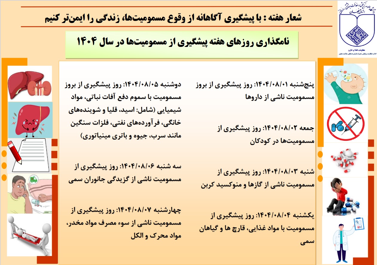 پیامهای مربوط به "هفته پيشگيري از مسمومیتها ( اول تا هفتم آبان ماه 1404)"