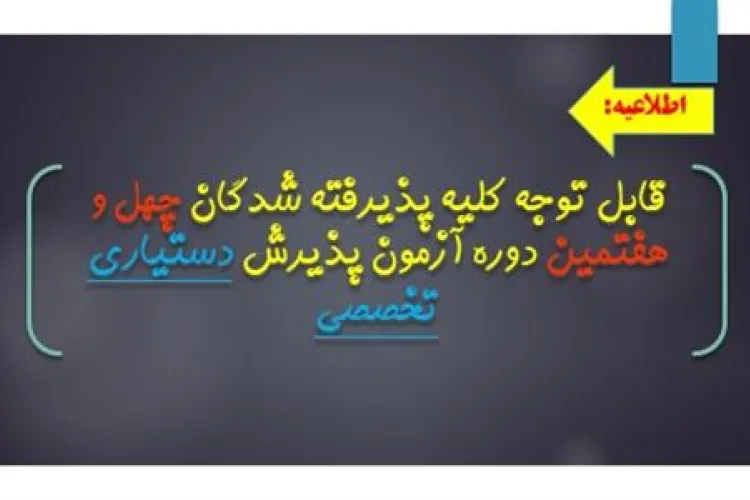 - ضمن عرض تبريك به پذيرفته شدگان چهل و هفتمین دوره آزمون پذیرش دستیاری به اطلاع مي رساند جهت کسب اطلاعات بیشتر و نحوه ثبت نام، به سایت معاونت آموزشی دانشگاه به آدرس https://edu.mui.ac.ir/2712 مراجعه نمایید.