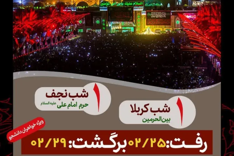 ثبت نام چهارمین اردوی زیارتی عتبات عالیات 📌هزینه اردو حداکثر ۲ میلیون تومان