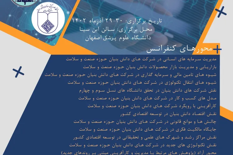با توجه به توسعه نقشآفرینی شرکتهای دانشبنیان در اکوسیستم فناوری کشور و جایگاه آنها در رشد اقتصادی و ایجاد اشتغال برای فارغالتحصیلان دانشگاهی بهعنوان موتور محرکه اقتصاد؛ مرکز تحقیقات مدیریت و اقتصاد سلامت دانشگاه علوم پزشکی اصفهان بر اساس رسالت خود قصد دارد در سال رشد تولید و مهار تورم «دومین کنفرانس بینالمللی توسعه کسبوکار با رویکرد شرکتهای دانشبنیان صنعت و سلامت» با همکاری مشترک «پژوهشکده مدیریت دانشکده علوم اداری و اقتصاد دانشگاه اصفهان» در تاریخ 29 و 30 آذرماه 1402 برگزار نماید.