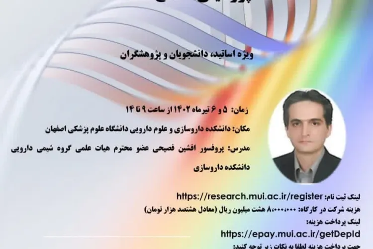 این کارگاه از ساعت 9 تا 14 در مجموع به مدت 10 ساعت توسط دکتر افشین فصیحی عضو هیات علمی گروه شیمی دارویی دانشکده داروسازی برگزار می گردد.