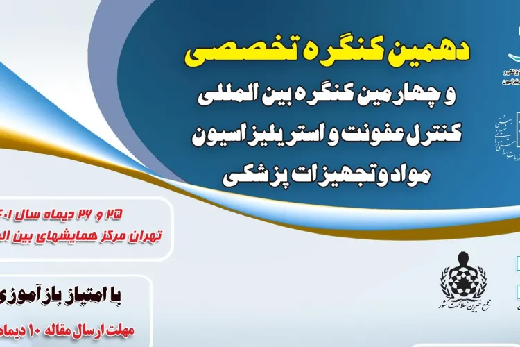 با توجه به اهمیت موضوع پیشگیری و کنترل عفونت در مراکز ارایه خدمات بهداشتی درمانی، دهمین کنگره تخصصی و چهارمین کنگره بین المللی کنترل عفونت و استریلیزاسیون، مواد و تجهیزات پزشکی، 25 و 26 دیماه 1401، توسط دانشگاه علوم پزشکی شهید بهشتی، در سالن همایش های بین المللی رازی برگزار خواهد شد.