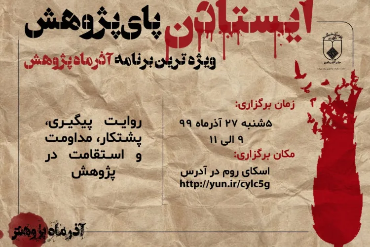معاونت تحقیقات و فناوری دانشگاه، ویژه ترین برنامه آذرماه پژوهش را، پنج شنبه ۲۷ آذرماه، با عنوان «ایستادن پای پژوهش» برگزار می نماید.