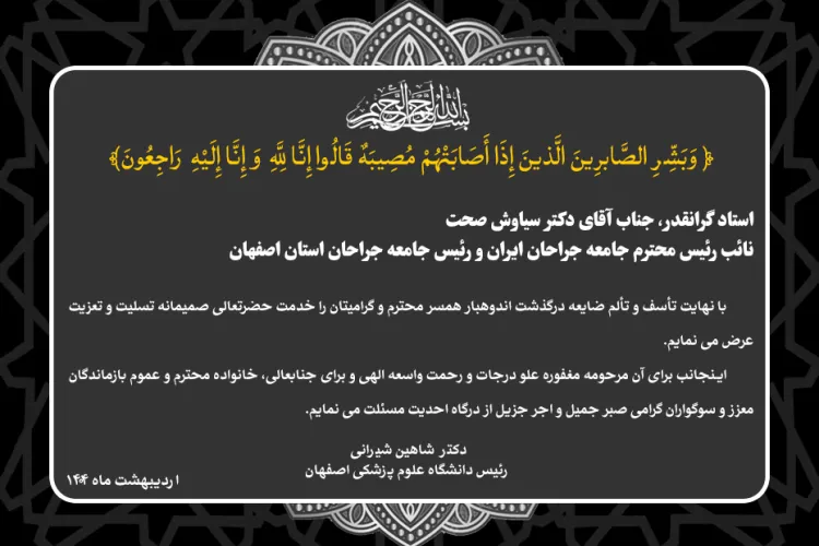 سهشنبه ۳۰ اردیبهشتماه، نخستین مراسم سالگرد شهدای خدمت، بهویژه شهید جمهور آیتالله سید ابراهیم رئیسی، با حضور رئیس دانشگاه، جمعی از اساتید، مسئولین و کارکنان در مسجد امام خمینی (ره) دانشگاه برگزار شد.