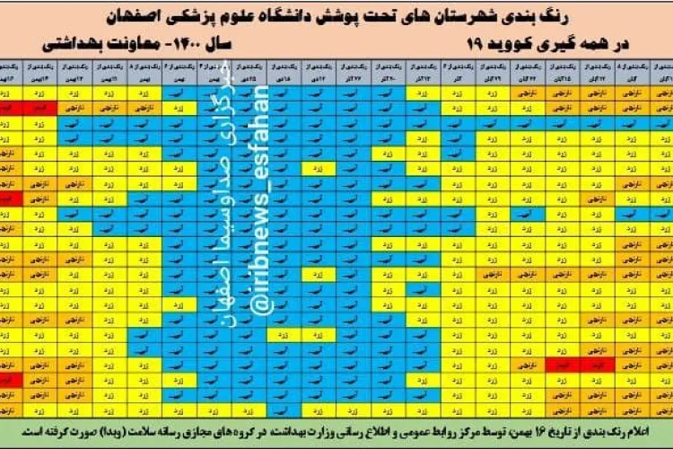 وی افزود: براساس آخرین رنگ بندی تعداد شهر های قرمز استان به 14 شهرستان رسیده و 8 شهرستان هم نارنجی هستند.در حال حاضر شهرستان های برخوار، تیران، چادگان، خور، شاهین شهر، گلپایگان، لنجان و نجف آباد در وضعیت نارنجی قرار دارند و سایر شهرستان ها قرمز هستند.
