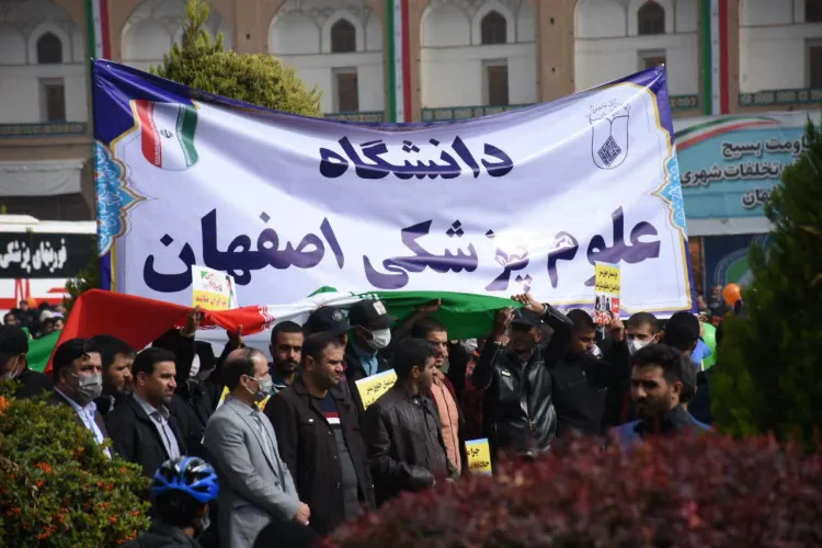 همزمان با یوم الله 13 آبانماه و روز دانش آموز، خانواده بزرگ بهداشت و درمان دانشگاه علوم پزشکی اصفهان با حضور پرشور خود در این راهپیمایی عظیم، همراه با دیگر اقشار جامعه انزجار خود را از مستکبرین و منافقین اعلام کردند.