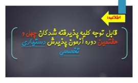 ضمن عرض تبريك به پذيرفته شدگان چهل و هفتمین دوره آزمون پذیرش دستیاری به اطلاع مي رساند جهت کسب اطلاعات بیشتر و نحوه ثبت نام به سایت معاونت آموزشی دانشگاه به آدرس https://edu.mui.ac.ir/2712 مراجعه نمایید.