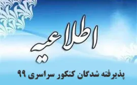 ضمن تبریک به پذیرفته شدگان آزمون سراسری سال ۱۳۹۹، به اطلاع می رساند دستور العمل ثبت نام پذیرفته شدگان، نحوه شرکت در کلاسهای مجازی و نیز چگونگی ارسال مدارک، روز دوشنبه مورخ ۹۹/۰۸/۱۲، از طریق سایت معاونت آموزشی دانشگاه اعلام خواهد شد.