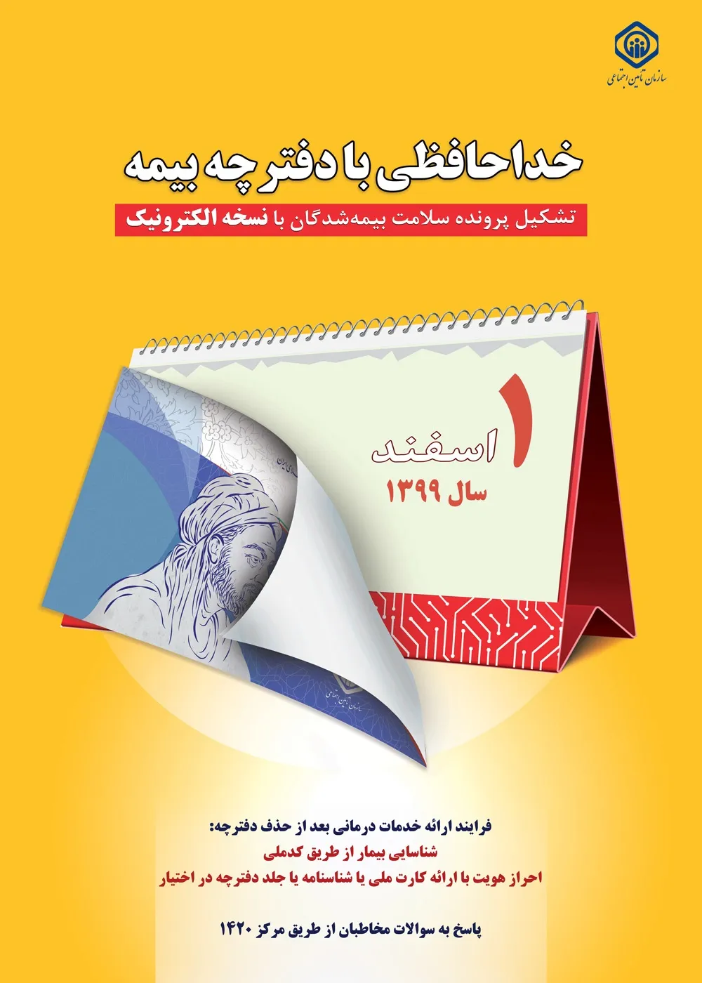 به اطلاع می رساند بر اساس بخشنامه مدیر عامل سازمان تامین اجتماعی، دفترچه های درمانی بیمه شدگان تامین اجتماعی از اول اسفندماه حذف و تمامی افراد تحت پوشش سازمان می توانند با ارائه کارت ملی، شناسنامه و یا جلد دفترچه درمانی در اختیار خود از خدمات تشخیصی و درمانی مورد تعهد سازمان برخوردار شوند.