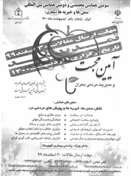 سومین همایش تخصصی و دومین همایش بین المللی سمن ها و خیریه ها تحت عنوان آیین محبت و مدیریت مردمی بحران (به صورت مجازی) در دانشگاه علوم پزشکی زنجان، اردیبهشت ماه 1400 برگزار خواهد شد.