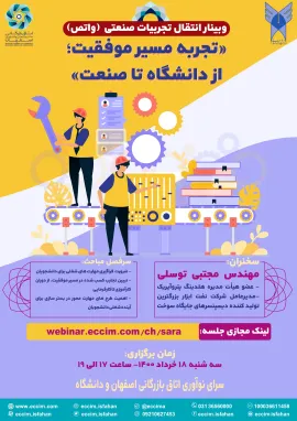اتاق بازرگانی، صنایع، معادن و کشاورزی اصفهان، به منظور انتقال تجربیات فعالان اقتصادی به دانشجویان، ساعت 17 تا 19 روز سه شنبه 18 خردادماه، اقدام به برگزاری وبینار انتقال تجربیات صنعتی (رویداد واتص) نموده است.