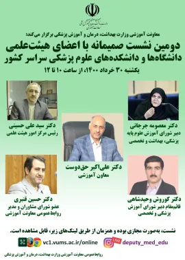 این نشست از ساعت 10 الی 12 صبح، به صورت مجازی با حضور مسئولینی از معاونت آموزشی وزارت متبوع برگزار خواهد شد.