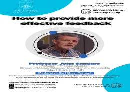 مدیریت مطالعات و توسعه آموزش پزشکی دانشگاه به مناسبت هفته آموزش وبینار آموزشی HOW to provide more effective feedback را با حضور پروفسور john sandars برگزار می نماید.