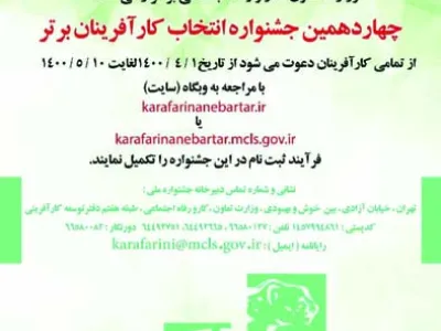 وزارت تعاون، کار و رفاه اجتماعی چهاردهمین جشنواره انتخاب کارآفرینان برتر را برگزار می کند.