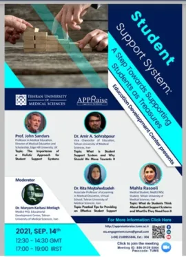 به شیوه مجازی توسط گروه آموزشی پزشکی دانشگاه علوم پزشکی تهران و با همکاری گروه Appraise To Raise معاونت بین الملل دانشگاه، ساعت 17 به وقت تهران روز سه شنبه 23 شهریورماه برگزار می گردد.