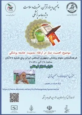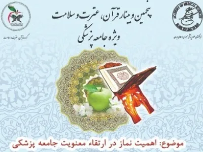 پنجمین وبینار قرآن، عترت و سلامت ویژه جامعه پزشکی با موضوع اهمیت نماز در ارتقاء معنویت جامعه پزشکی، ساعت 19 الی 20:30 پنج شنبه 27 آبان ماه برگزار خواهد شد.