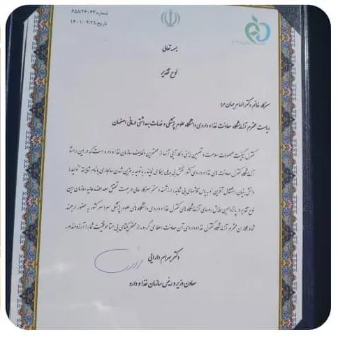 آزمایشگاه کنترل غذا و دارو معاونت غذا و داروی دانشگاه علوم پزشکی اصفهان مورد تقدیر ریاست سازمان غذا و دارو دکتر دارائی قرار گرفت.
