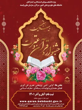 گفتنی است ثبت نام جشنواره قرآن و عترت وزارت بهداشت از ۱۱ آبان ماه آغاز و تا بیستم آذرماه سالجاری ادامه خواهد داشت و مرحله دانشگاهی آن در نیمه اول دی ماه برگزار خواهد شد.