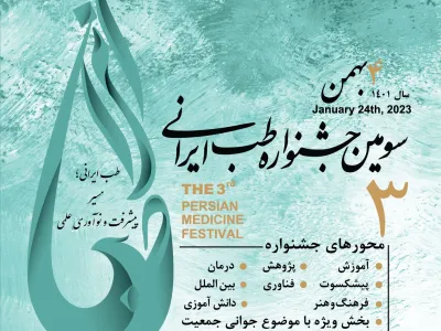 دفتر طب ایرانی و مکمل وزارت بهداشت، درمان و آموزش پزشکی در راستای توسعه منطقی مکتب غنی طبی در پیشگیری، درمان، آموزش، پژوهش، تولید، کارآفرینی و فناوری های دانش بنیان، سومین جشنواره طب ایرانی را با شعار«طب ایرانی، مسیر پیشرفت و نوآوری علمی» برگزار می کند.