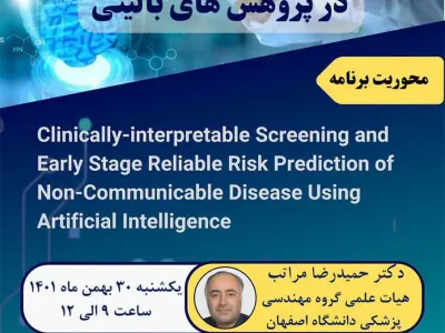 کارگاه حضوری و وبینار کشوری"کاربرد هوش مصنوعی در پژوهش های بالینی" با همکاری پژوهشکده پیشگیری اولیه از بیماری های غیر واگیر و با محوریت: