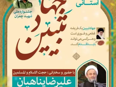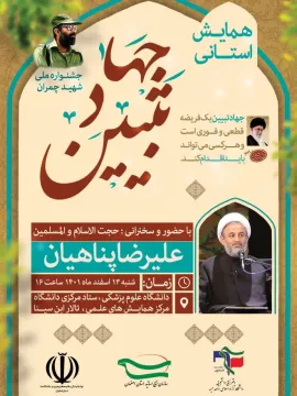 همایش استانی جهاد تبیین Submitted by ravabet on 28 February 2023 همایش استانی جهاد تبیین، با حضور حجت الاسلام والمسلمین علیرضا پناهیان در دانشگاه علوم پزشکی اصفهان برگزار خواهد شد. زمان: شنبه 13 اسفندماه 1401، ساعت 16 مکان: تالار ابن سینا مرکز همایش های بین المللی دانشگاه 111 بازدید
