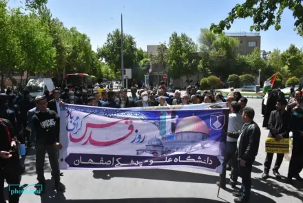 حضور دانشگاهیان علوم پزشکی اصفهان در کنار مردم روزه دار اصفهانی در راهپیمایی روز قدس
