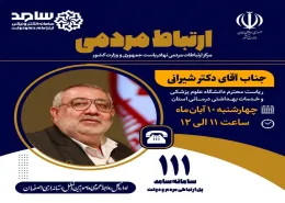 چهارشنبه ۱۰ آبان ماه ۱۴۰۲ از ساعت ۱۱ الی 12 ، دکتر شاهین شیرانی رییس دانشگاه علوم پزشکی اصفهان از طریق سامانه تلفنی سامد(۱۱۱) پاسخگوی کلیه سوالات، انتقادات و پیشنهادات مرم در خصوص حوزه سلامت استان می باشد.