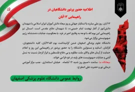 اطلاعیه/ حضور پرشور خانواده بزرگ دانشگاه علوم پزشکی اصفهان در راهپیمایی ۱۳ آبان