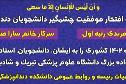 کسب رتبه برتر دانشجویان دانشکده دندانپزشکی دانشگاه در آزمون جامع علوم پایه دندانپزشکی 1402