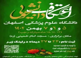 اعتکاف دانشجویی دانشگاه علوم پزشکی اصفهان ۵ ، ۶ و ۷ بهمن ماه مصادف با ۱۳ و ۱۴ و ۱۵ ماه رجب برگزار خواهد شد.