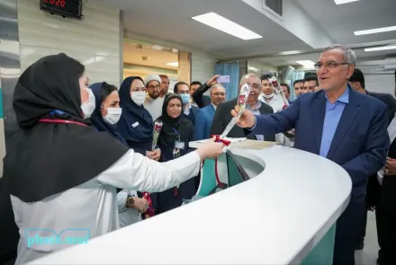در این بازدید دکتر عین اللهی وزیر محترم بهداشت، درمان و آموزش پزشکی ضمن حضور در بخش اورژانس آن مرکز و نیز بررسی وضعیت آمادگی کادر درمان از زحمات شبانه روزی کارکنان آن بیمارستان در طرح سلامت نوروزی تشکر و قدردانی نمود.