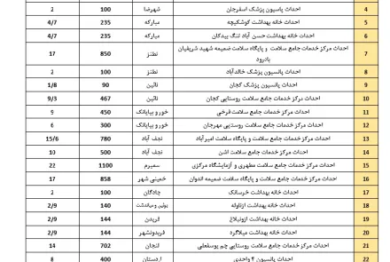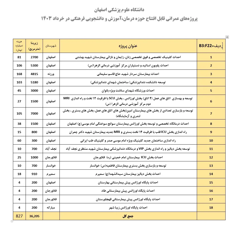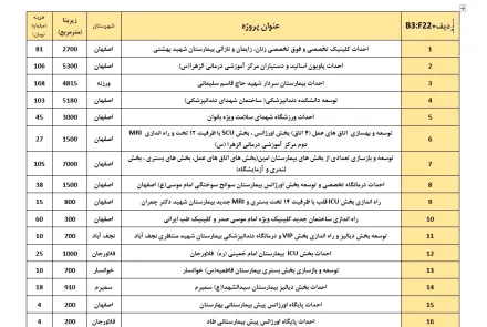 پروژه های سلامت محور دانشگاه علوم پزشکی اصفهان به شرح جداول زیر می باشد: