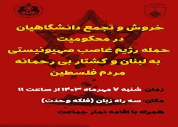 اطلاعیه تجمع دانشگاهیان در محکومیت حمله رژیم صهیونیستی به لبنان Submitted by ravabet on 28 September 2024 40 بازدید