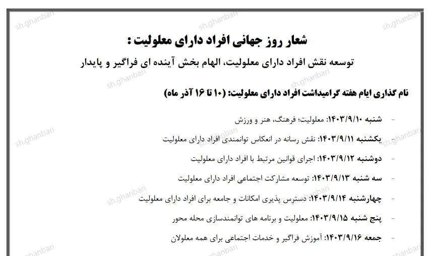 گرامیداشت روز جهانی افراد دارای معلولیت