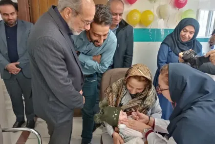 پس از آن حضار برای تجویز واکسن به اتاق واکسیناسیون مراجعه کرده و واکسن خوراکی برای کودکان دو ماهه تجویز شد.
