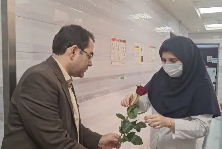 یکشنبه سوم فروردین ماه، دکتر معصومی معاون آموزشی دانشگاه از بیماستان های شهید دکتر چمران و سیدالشهدا (ع) اصفهان بازدید و ضمن تبریک به مناسبت فرارسیدن ایام نوروز با اهدای شاخه گلی از زحمات شبانه روزی کادر درمان این مراکز تقدیر و تشکر نمود.