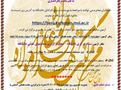 همكاران محترم همچنین مي توانند جهت كسب اطلاعات بيشتر جهت شركت در مسابقه به وبسايت بسيج كاركنان به آدرس : (https://basij-karkonan.mui.ac.ir) مراجعه فرمايند.