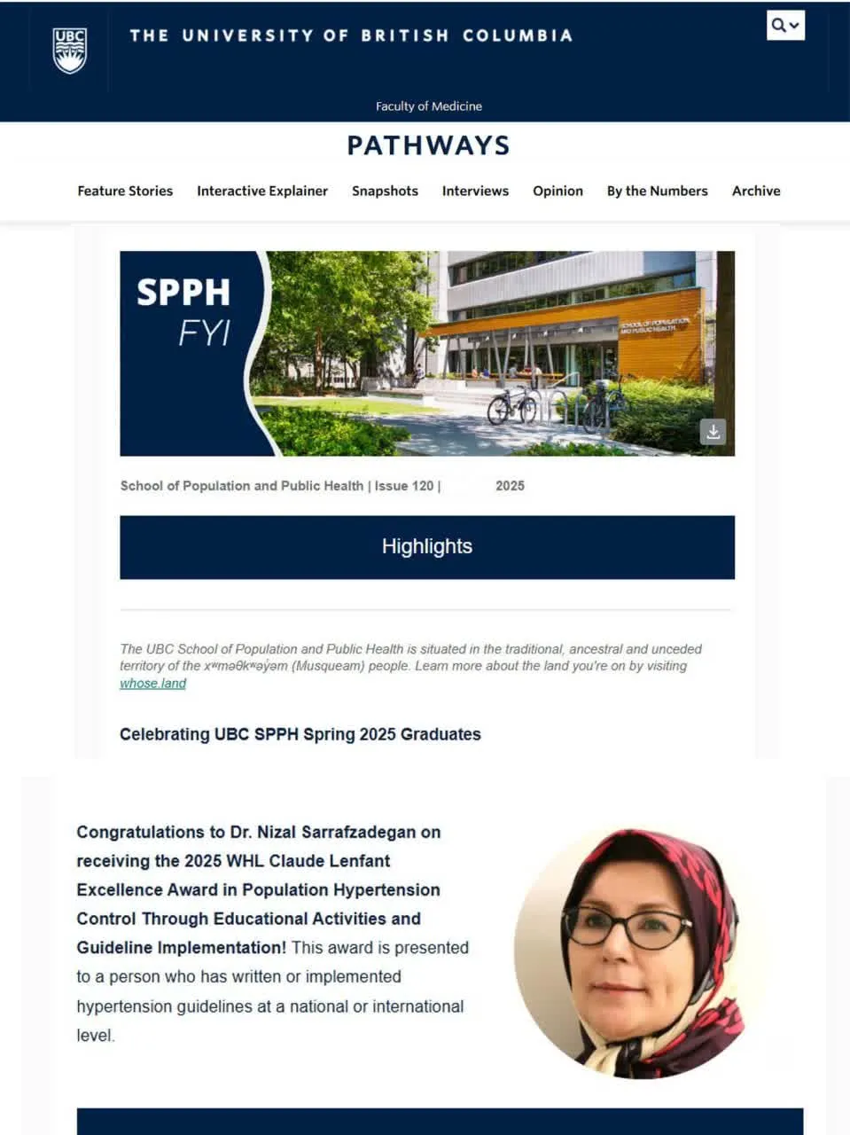 خانم دکتر صراف زادگان رئیس پژوهشکده قلب و عروق اصفهان، موفق به کسب جایزه معتبر Claude Lenfant WHL Excellence Award 2025 از سوی اتحاد جهانی فشار خون شد.