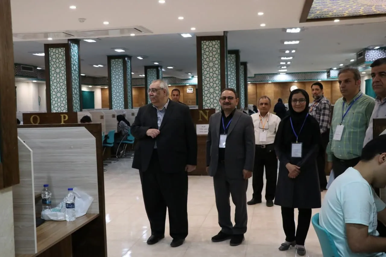 در حین برگزاری آزمون رئیس دانشگاه به همراه جمعی از مدیران آموزشی دانشگاه از فرآیند برگزاری آزمون بر اساس دستورالعمل های ابلاغی از سوی وزارت بهداشت، درمان و آموزش پزشکی بازدید به عمل آوردند.